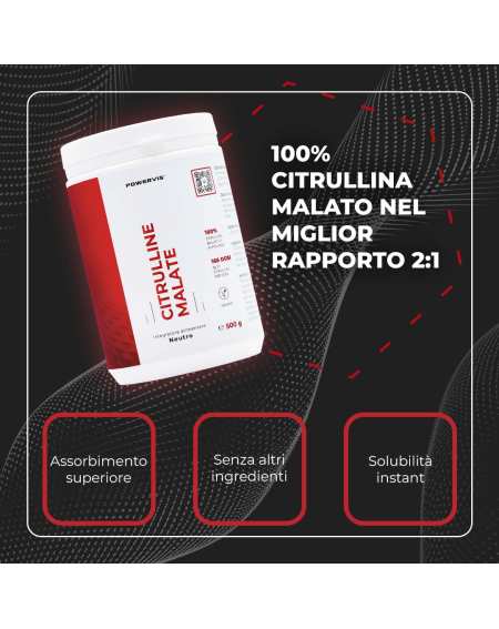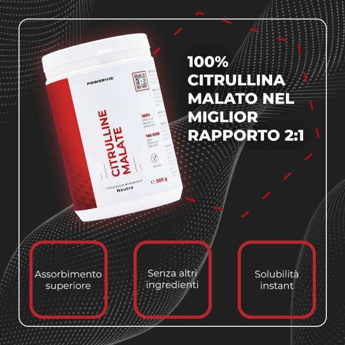 Citrulline Malate è un integratore alimentare in polvere a base di Citrullina Malato 100% nel rapporto 2:1, la formula più efficace sul mercato.