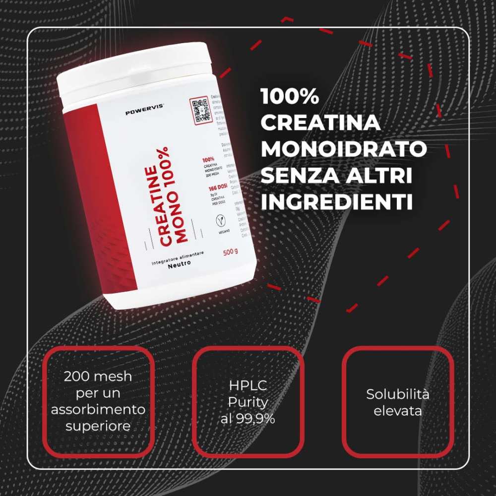 Per garantire la massima efficacia, Creatine Mono 100% è stata formulata con una creatina ad elevata solubilità, senza l'aggiunta di eccipienti.