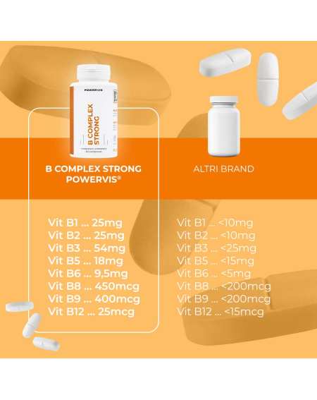 B Complex Strong è un integratore alimentare a base di vitamine del gruppo B ad alto dosaggio.