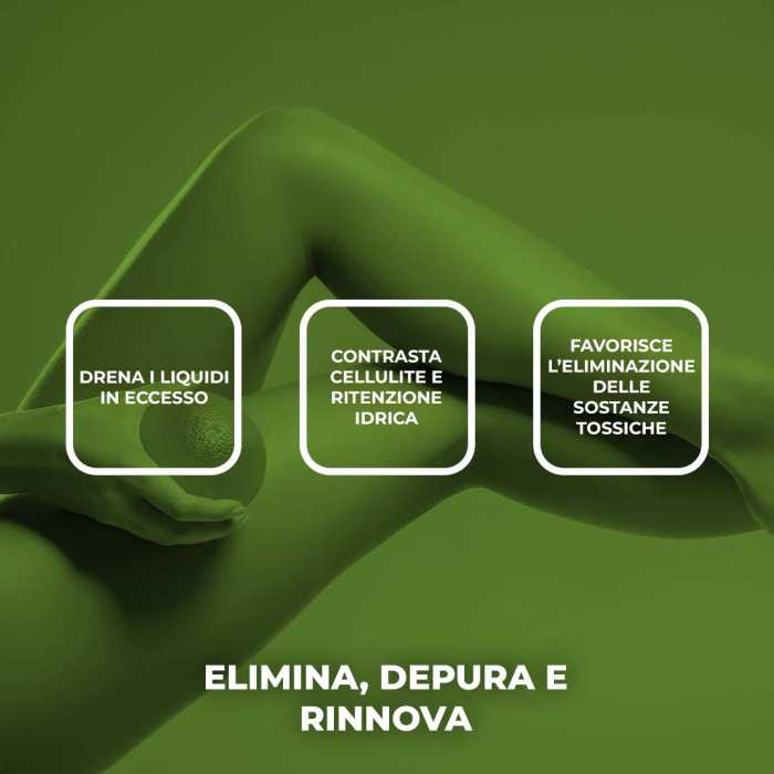 Per garantire la massima efficacia, abbiamo realizzato una formula avanzata composta da 10 ingredienti naturali che agiscono in sinergia tra loro per promuovere sia l'azione drenante che depurativa.