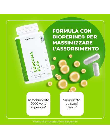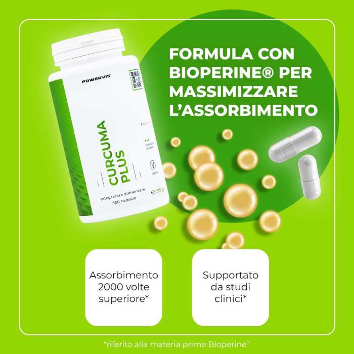 - BioPerine® migliora l'assorbimento della Curcuma fino a 2000x