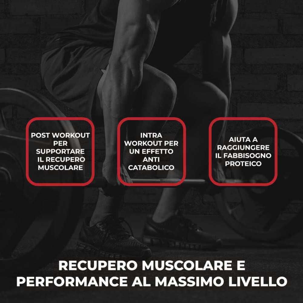 - 1,1g d Aminoacidi Essenziali (di cui 800mg di BCAA 2:1:1) per compressa