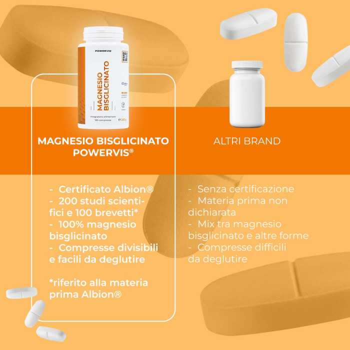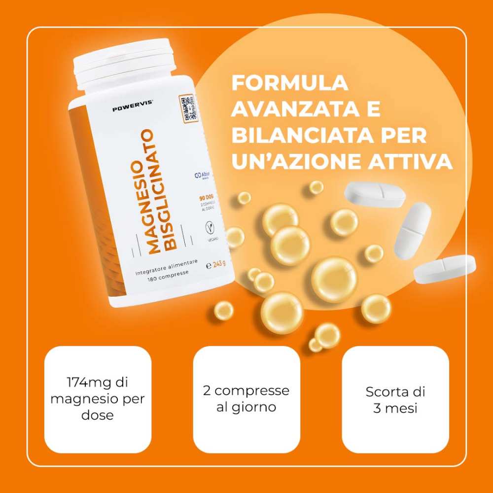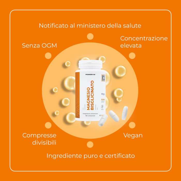 Il magnesio nella forma bisglicinata lega il magnesio a due molecole di glicina e, rispetto ad altre forme di questo minerale, presenta un maggior assorbimento da parte del nostro organismo ed è più facilmente digeribile