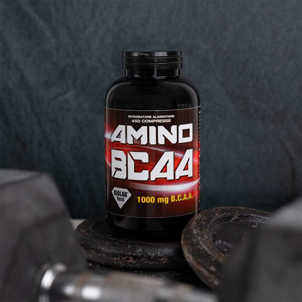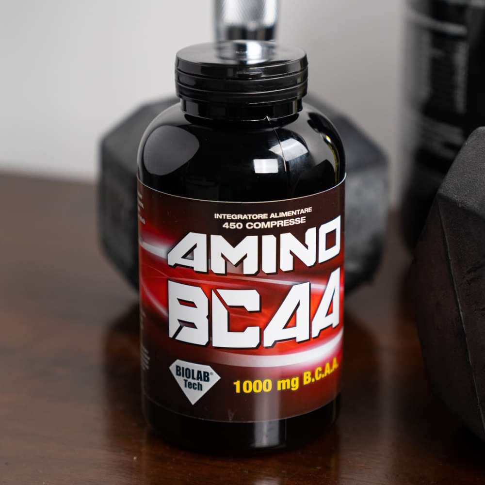 Amino Bcaa è un integratore a base di aminoacidi ramificati in compresse da 1g di Bcaa nel rapporto 2:1:1 (leucina, isoleucina e valina).