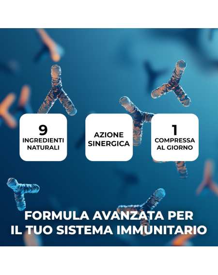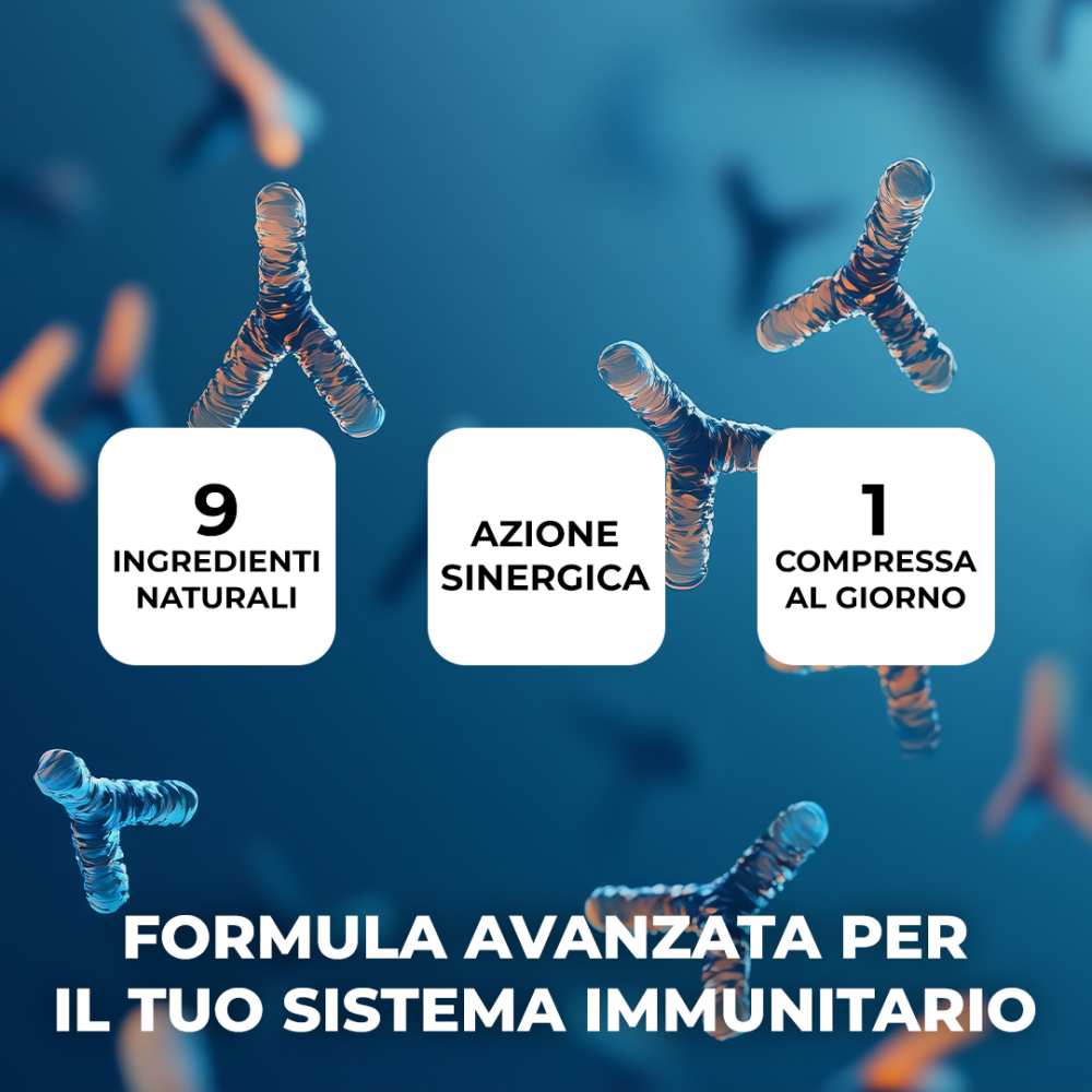 Per la massima efficacia, ogni compressa apporta un dosaggio elevato per tutti i principi attivi che la compongono. In questo modo è sufficiente assumere 1 sola compressa al giorno per supportare al meglio il sistema immunitario.